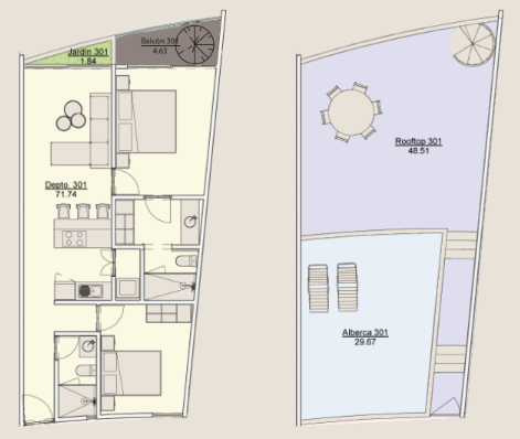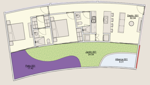 Taking advantage of the shape and location of the land, we’ve crafted a project that accentuates horizontal elegance, achieving an imposing volume. This sense of amplitude is heightened by the curves adorning the balconies, adding rhythm and continuity. The semicircular facade naturally beckons toward the street, accentuated by an architectural element that marks the project’s outset.