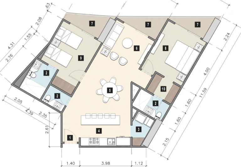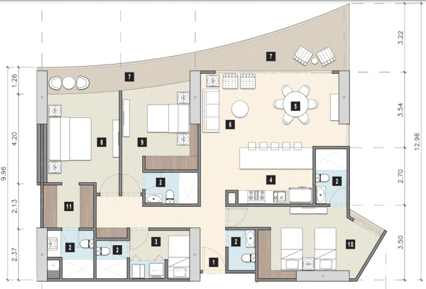 4 impressive towers of 21 levels with 1 to 3 bedroom units with panoramic views of the Nichupté Lagoon and Cancun Hotel Zone.