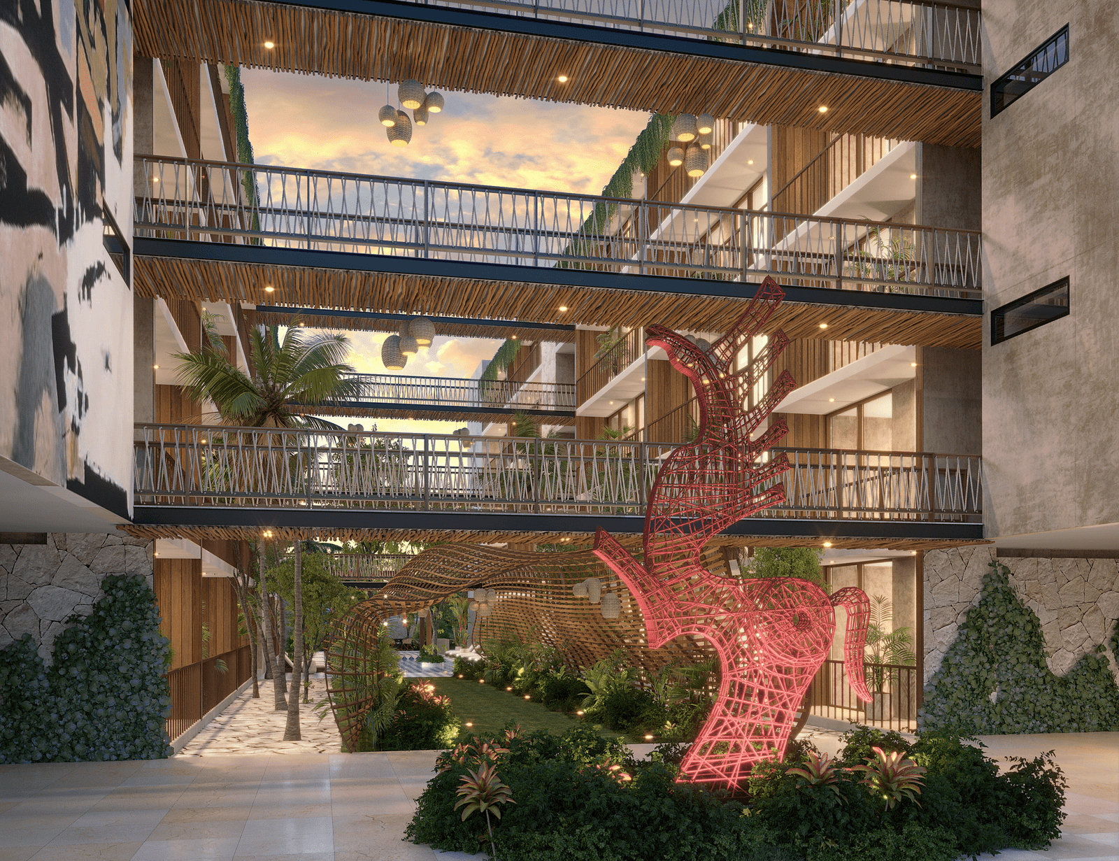 Art is also inside you, that is why we designed a reflection of that essence in this apartment project. Surrounded by nature and the cultural expression of the beautiful town of Tulum, Distrito Arte is revealed as a true representation of the perfect place for your modern lifestyle, in an unbeatable location.