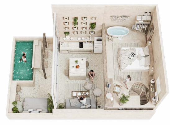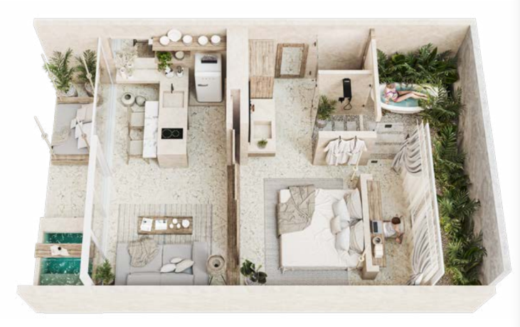 Private pool in every apartment. Designed for high revenue on Airbnb in the most elegant style of Tulum.